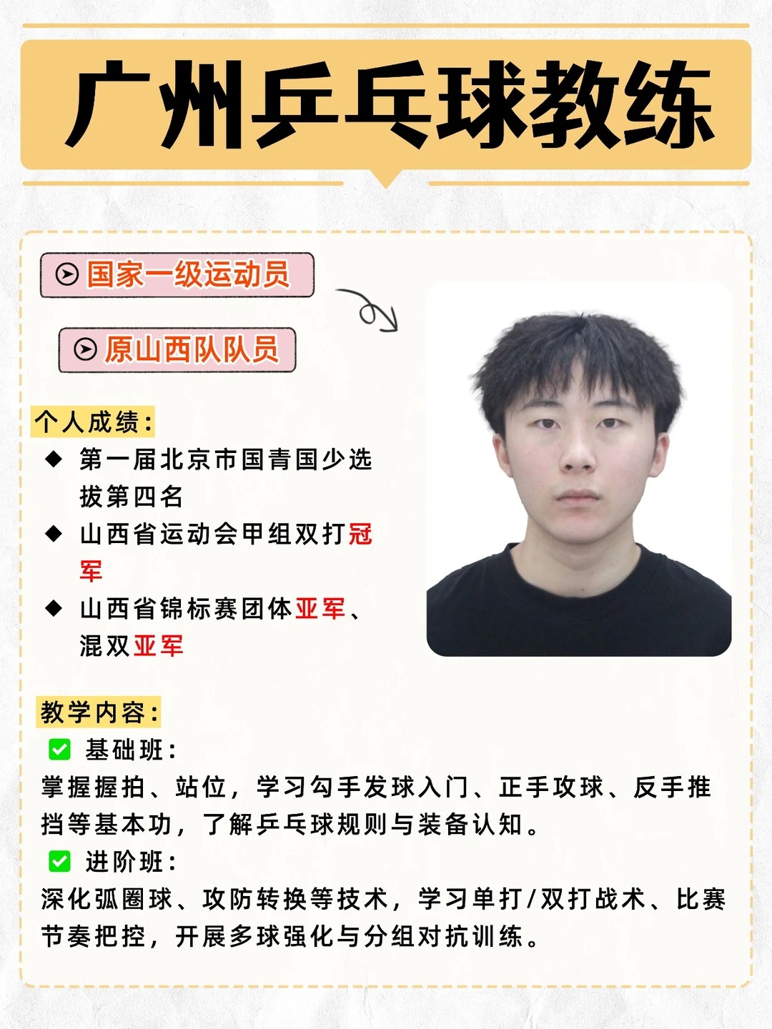 谁看了全运会乒乓球的精彩对拉,不想自己也能在球桌上 “炫技” 一把?广州番禺、天河的球友们,挖到一位 “国字号” 乒乓球教练 —— 吴佳泽,专业度直接拉满!🥇