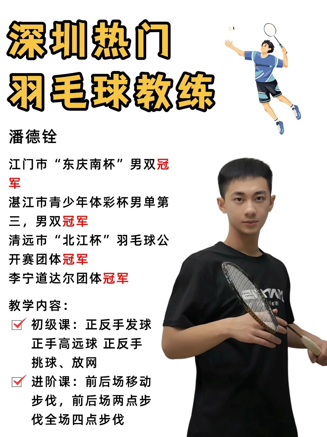 很多学员从完全不会到能稳定对打,甚至参加业余比赛,都是跟着潘教练一步步练出来的。如果你也在深圳,想认真学羽毛球、少走弯路,他很值得一试!