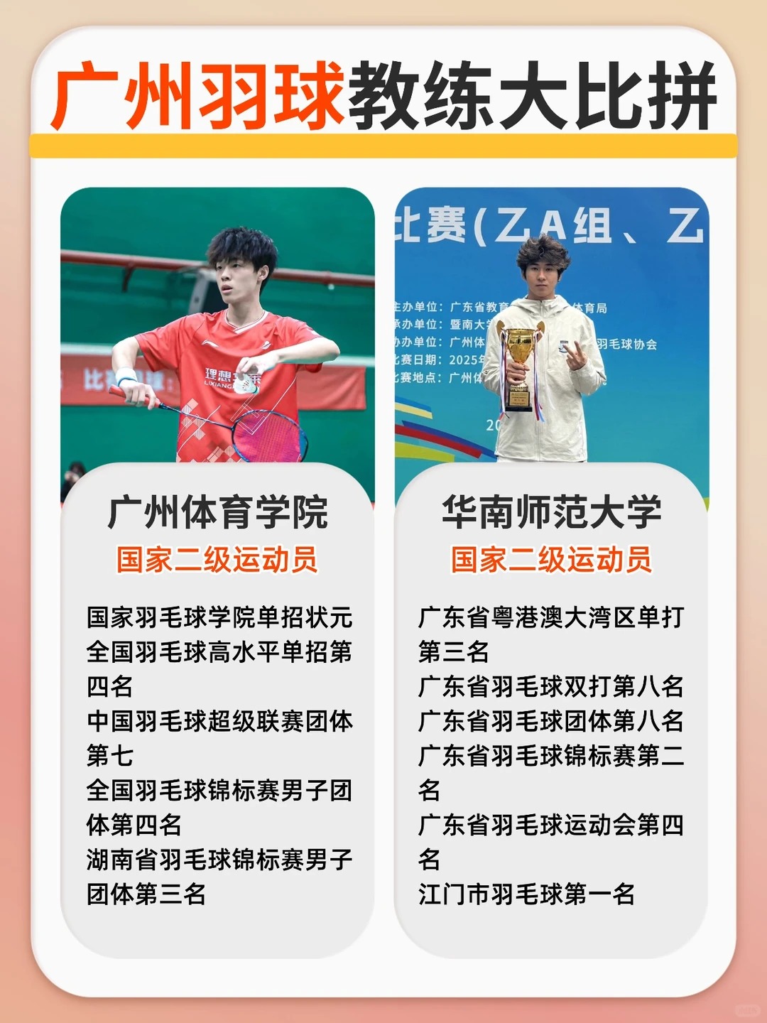 广州选羽球教练?广体国手VS华师体考高手