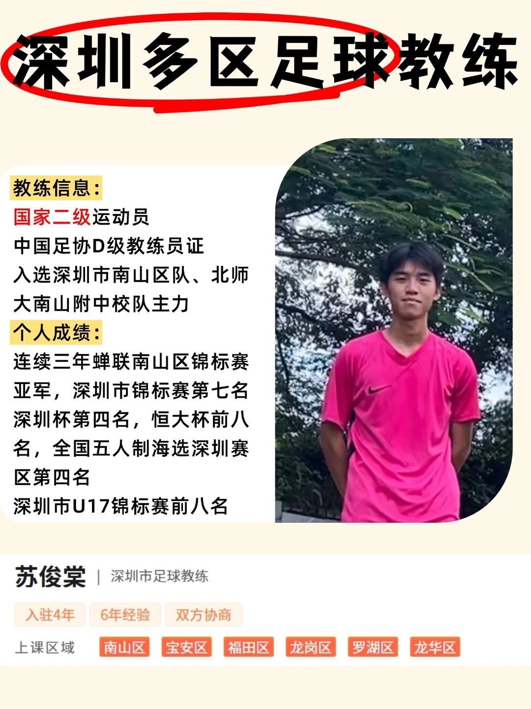 自己以前就是深圳南山区队的球员