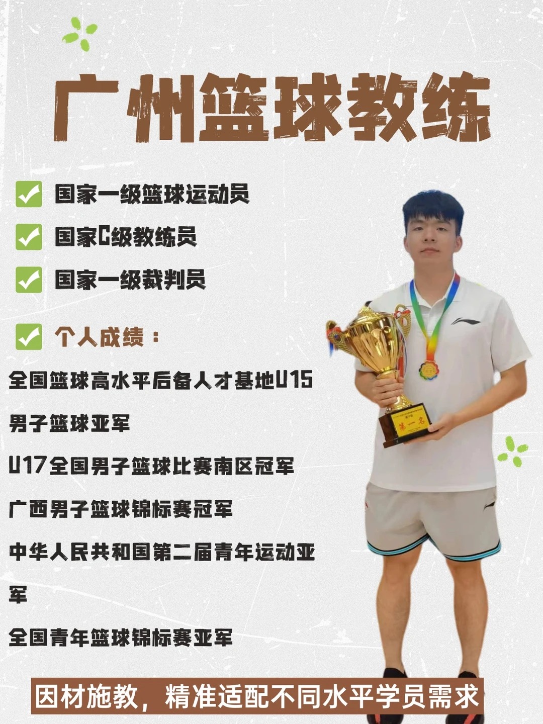 ✅ 长期在广东实验中学共建队及宏远篮球俱乐部从事青训工作,教学经验系统可靠
