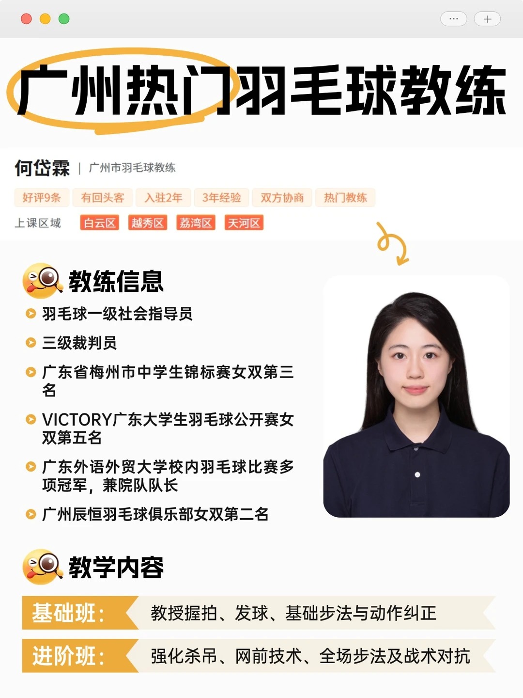 广州宝藏羽毛球教练|专业耐心多区可约
