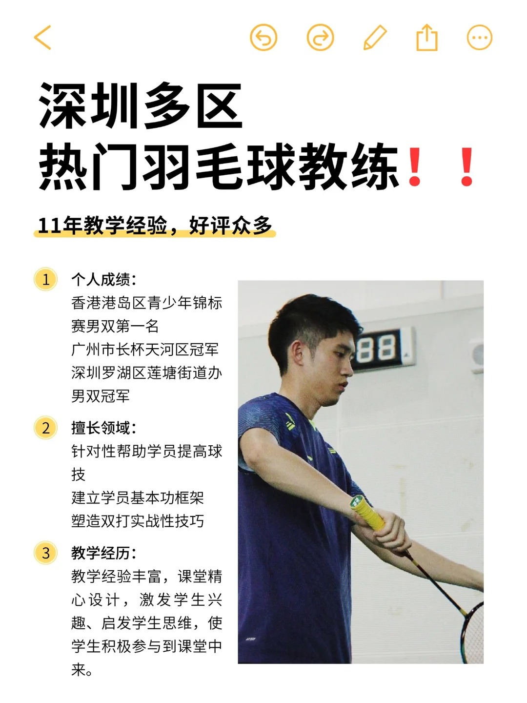 深圳想学羽毛球的宝子看过来👀!挖到一位11年教学经验、战绩过硬、口碑爆棚的宝藏教练啦🥳